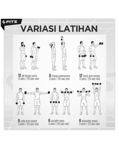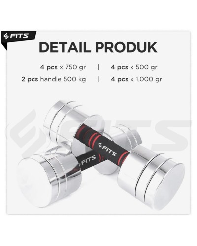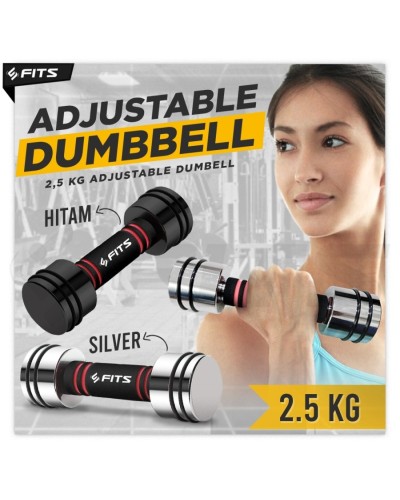 - Description : 1 Set x FITS Adjustable Dumbbell 5 kg 1 pasang terdiri dari - 8pcs x 0.625kg - 4pcs x 1kg - 2pcs x handle 0.5kg