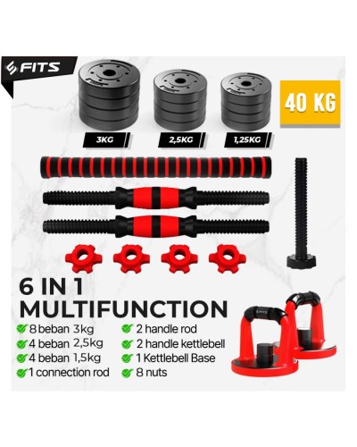 FITS 6 in 1 Adjustable 40kg Dumbbell Barbell Set adalah produk adjustable dumbbell dan barbell terbaru dari SFIDN FITS yang dapat disesuaikan sesuai kebutuhan.