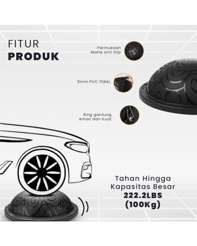 FITS Premium Balance Bosu Ball adalah alat pendukung olahraga sisi lainnya berbentuk setengah lingkaran lembut yang menyerupai kubah. Alat ini dapat membantu Anda lebih fokus pada keseimbangan, stabilitas, dan kekuatan inti saat latihan, seperti latihan daya tahan dan kekuatan kardio.