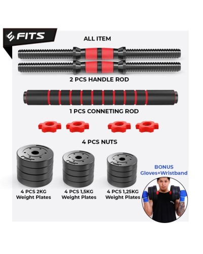 - Description : - 4pcs X 1,25kg - 4pcs X 1,5kg - 4pcs X 2kg - 4pcs X Mur - 2pcs X Pegangan Dumbell - 2pcs X Pegangan Kettlebell - 1pcs X Penghubung Pegangan - 2pcs X Sarung Tangan Allsize - 2pcs X Wristband