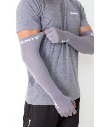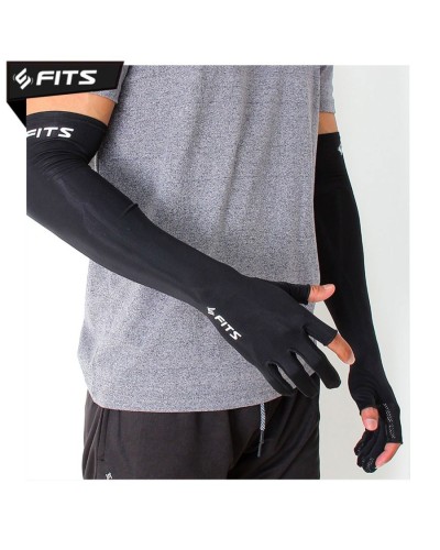 Fits Arm Hand Sleeve With Glove berbahan polyester, jenis bahan kain yang lembut dan sejuk yang dapat membuat tangan Anda tetap kering meskipun di cuaca yang panas dan produk ini memiliki ukuran S dengan detail ukuran panjang 50 cm dan lingkar bagian atas 22 cm.